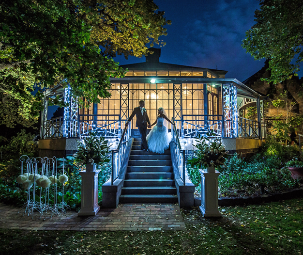 Available to have both ceremony and reception on the property with 4 ½ acres of gardens for photography. A stunning spiral staircase is by far the stand out for your photo opportunities. Pre dinner drinks and canapés can be held in the elaborate Victorian room or in the gardens. Onsite accommodation is available for the newlyweds with a beautiful double spa bath overlooking the valley.